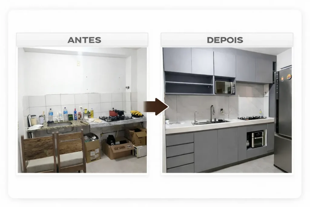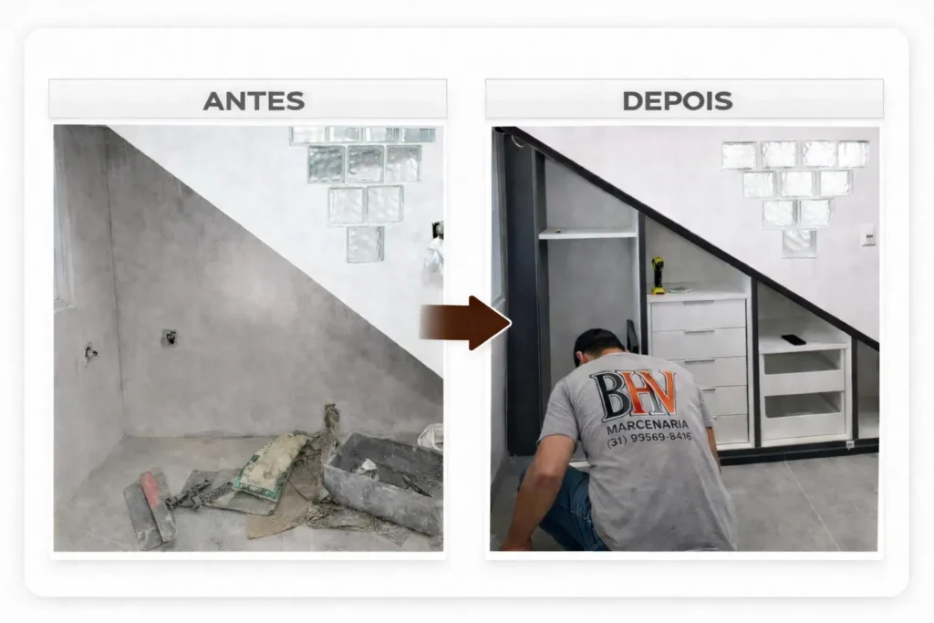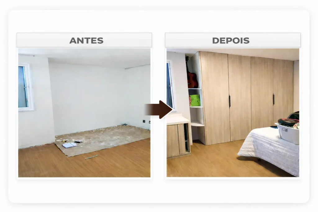 Cada projeto é único. Adaptamos medidas, layouts e acabamentos ao seu estilo de vida e necessidades.